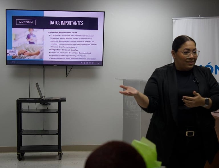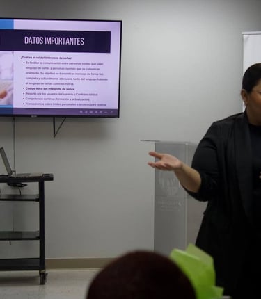 Su amor por la inclusión y la comunicación sin barreras la llevó a capacitarse y certificarse como instructora e intérprete, acumulando más de diez años de experiencia en enseñanza y acompañamiento.